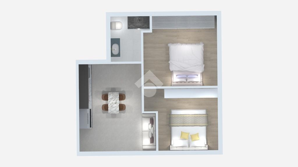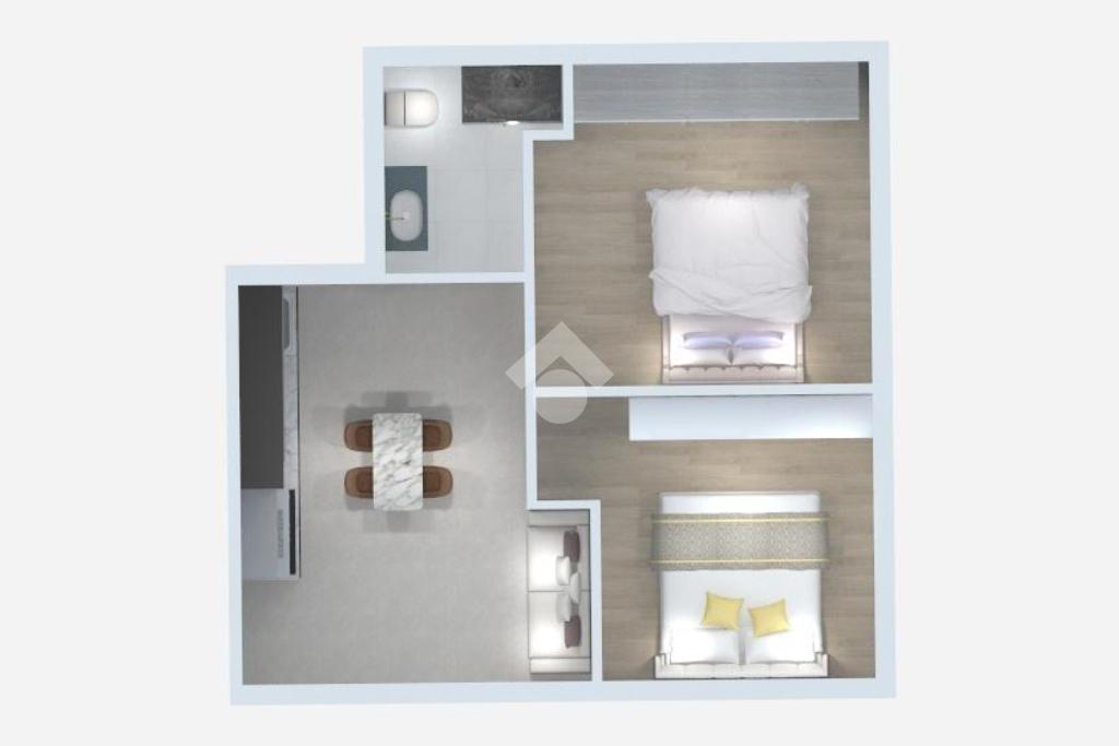 La soluzione si trova al piano terra ed è così composta: soggiorno con cucina a vista dal quale si accede all'ampio giardino, ideale per momenti di relax all'aperto. Completano la proprietà due camere matrimoniali e un bagno ristrutturato, con finiture di pregio e box doccia in cristallo.