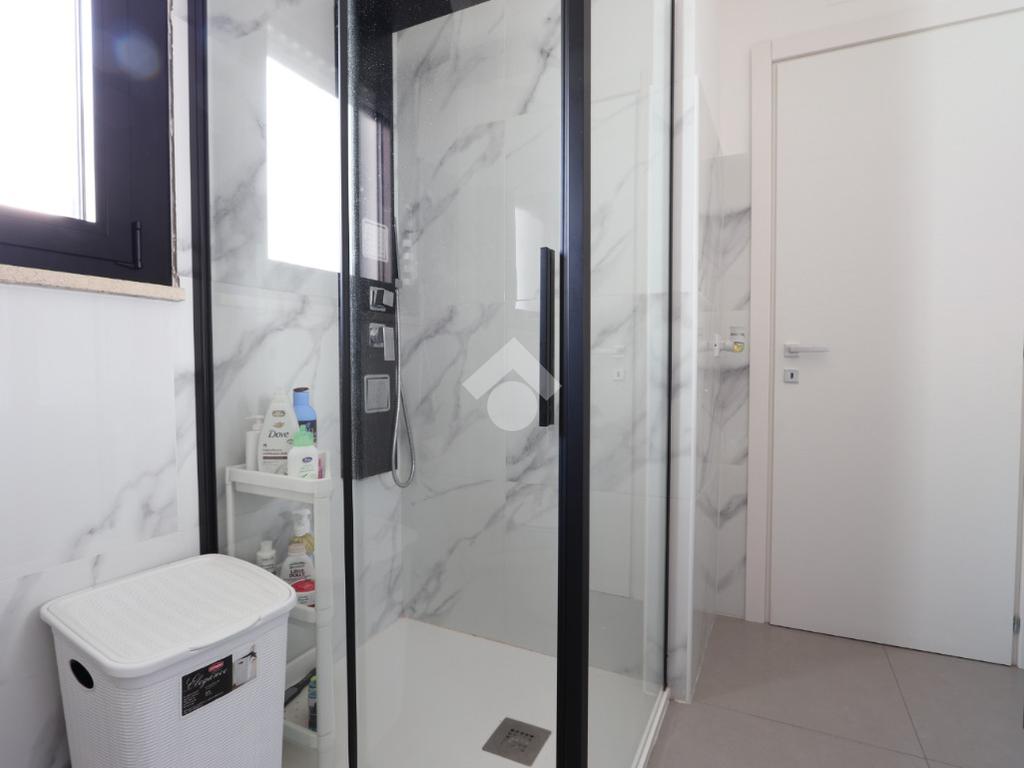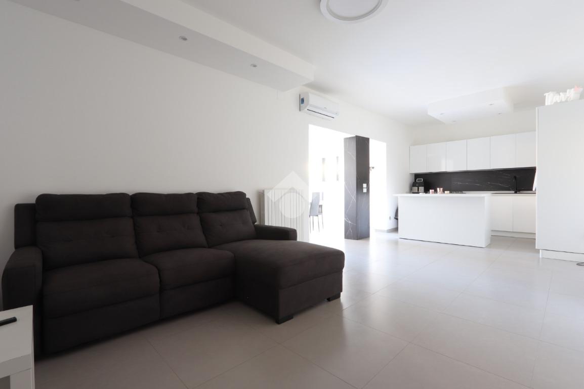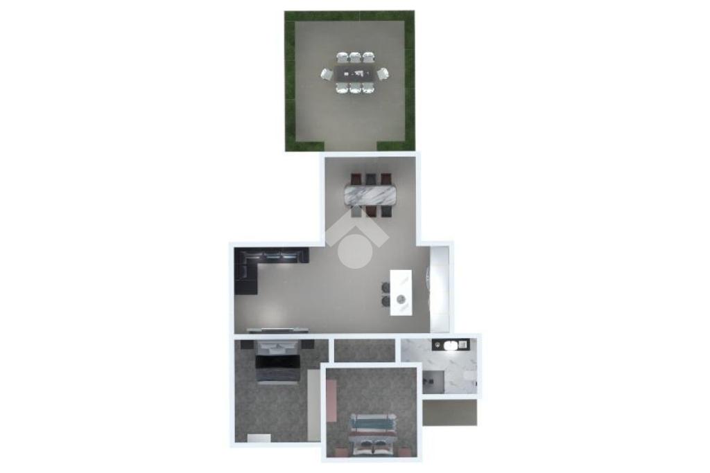La soluzione si distingue per gli spazi ben distribuiti e l’atmosfera moderna e accogliente. L’ingresso si apre su un ampio soggiorno con cucina a vista, perfetto per momenti di relax o convivialità. Dal soggiorno si accede direttamente a una spaziosa corte esterna pavimentata di circa 30 mq, ideale per pranzi all’aperto, cene estive o semplicemente per godersi uno spazio esterno privato.