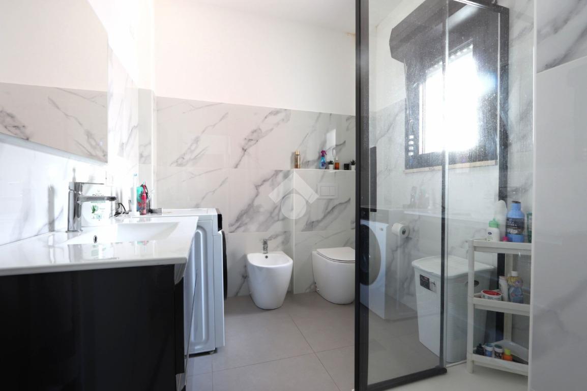 Un comodo disimpegno conduce alla zona notte, composta da due camere matrimoniali, di cui una con accesso a un balcone privato, e un bagno finestrato recentemente ristrutturato, dotato di box doccia.