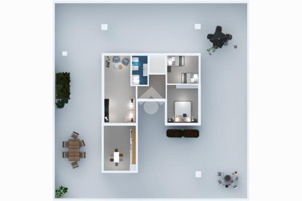 Il punto forte è sicuramente l’immenso terrazzo perimetrale di circa 350 mq, un vero e proprio salotto a cielo aperto che offre una vista panoramica sul mare e sui monti circostanti e garantisce la possibilità di vivere appieno gli spazi esterni durante tutto l’anno. Un luogo unico dove poter organizzare cene all’aperto, rilassarsi al tramonto o semplicemente respirare il profumo del mare.