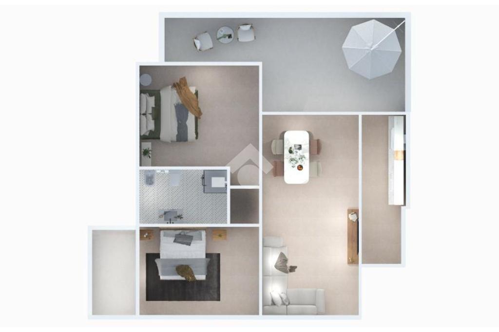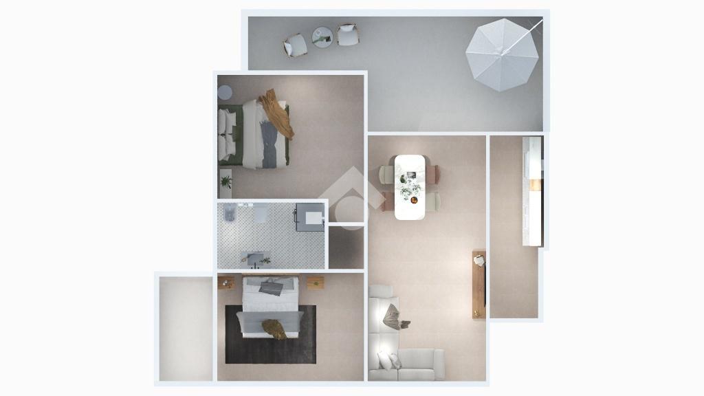 L'ingresso si apre su un soggiorno ampio e luminoso con cucinotto separato, da cui si accede a un terrazzo abitabile ideale per pranzi all'aperto e momenti di relax. La zona notte, ben separata da un comodo disimpegno, è composta da due camere matrimoniali, una delle quali con balcone privato, e da un bagno finestrato con box doccia.
