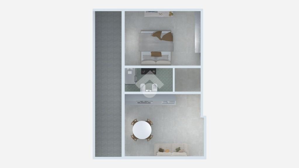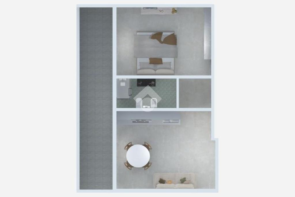 L’appartamento si apre su un luminoso soggiorno con cucina a vista, ambiente reso ancora più gradevole dall'accesso diretto al terrazzo abitabile. Un funzionale disimpegno conduce alla zona notte, dove troviamo una comoda camera matrimoniale e un bagno finestrato.
