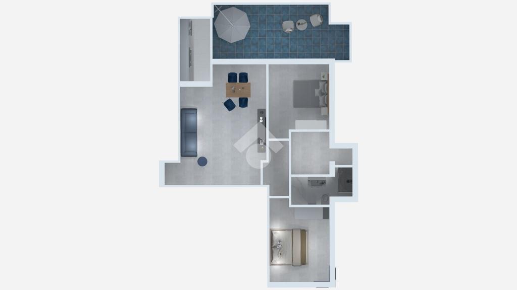 La zona notte è composta da una camera matrimoniale, anch'essa con vista mare e accesso al terrazzo, e da una seconda camera matrimoniale di generose metrature. La disposizione interna è completata da un bagno con box doccia e finestra e da un funzionale ripostiglio, anch'esso finestrato.