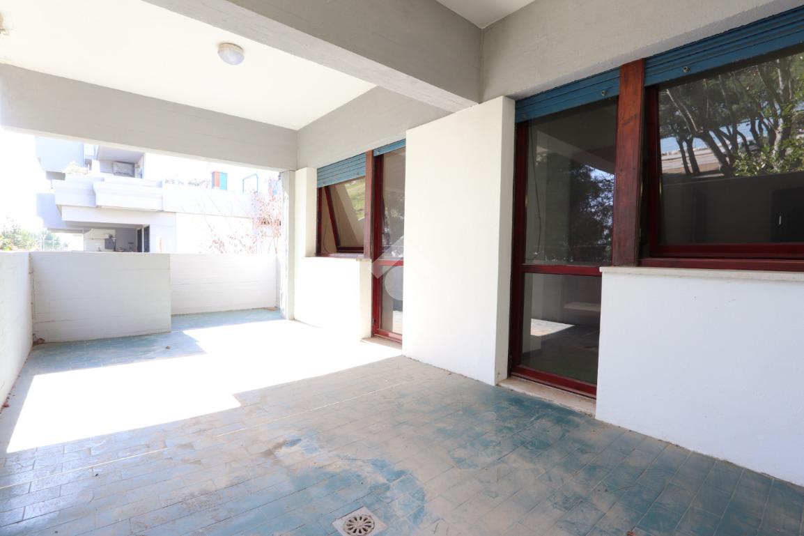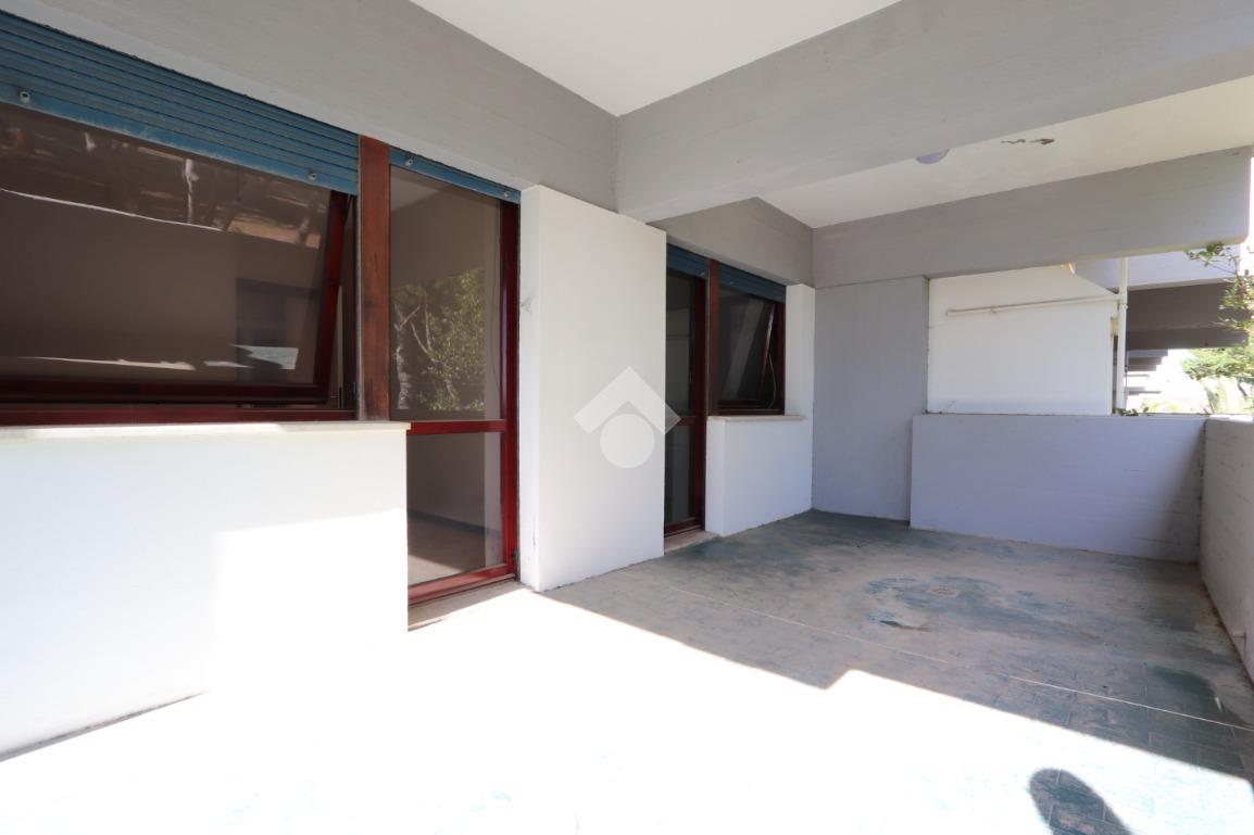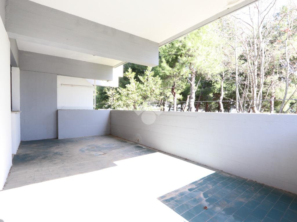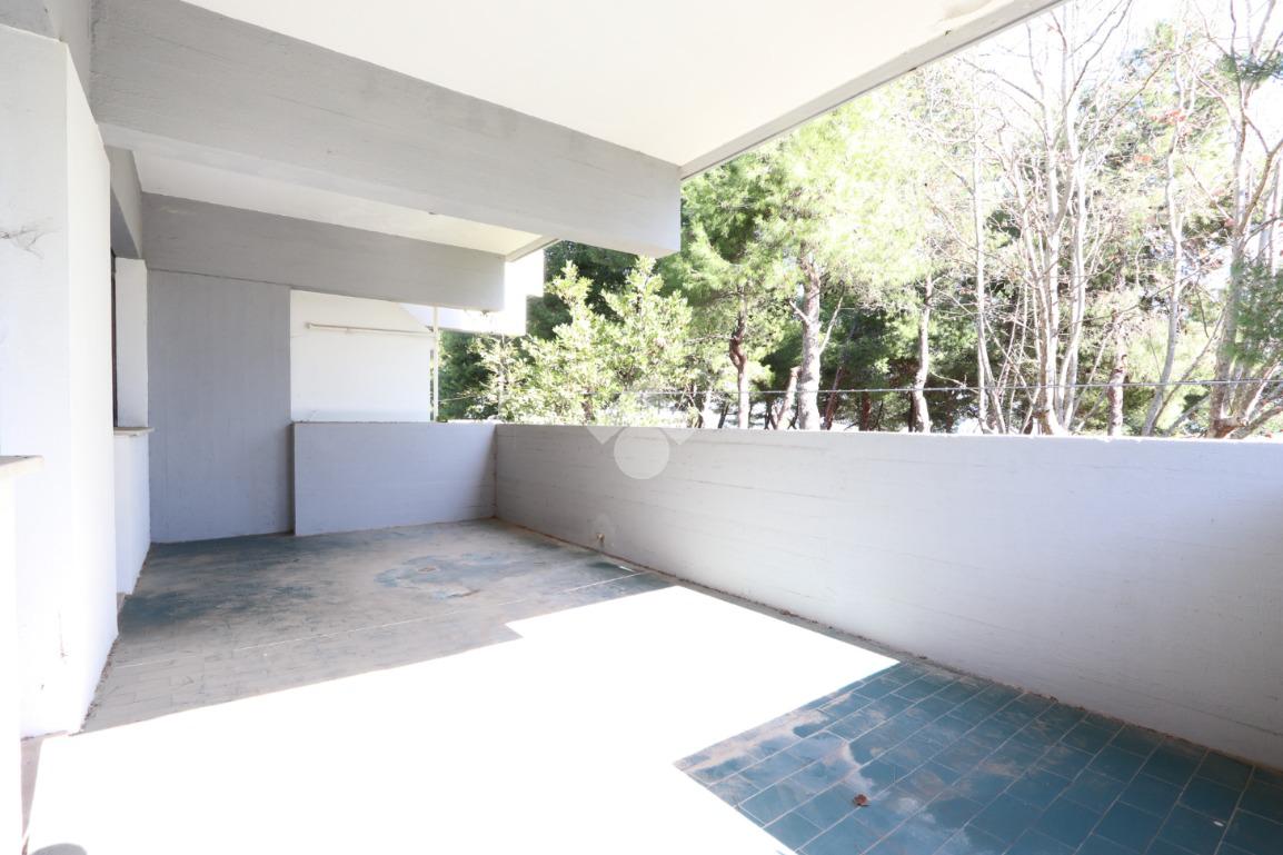 L’appartamento, dalle comode dimensioni, si apre su un soggiorno spazioso e luminoso dal quale si può già ammirare il mare. Questo ambiente, servito da un cucinotto separato, permette l'accesso diretto all'ampio terrazzo abitabile: un affaccio privilegiato sulla pineta che vanta una splendida vista mare, ideale per godersi la brezza marina in totale privacy e tranquillità.