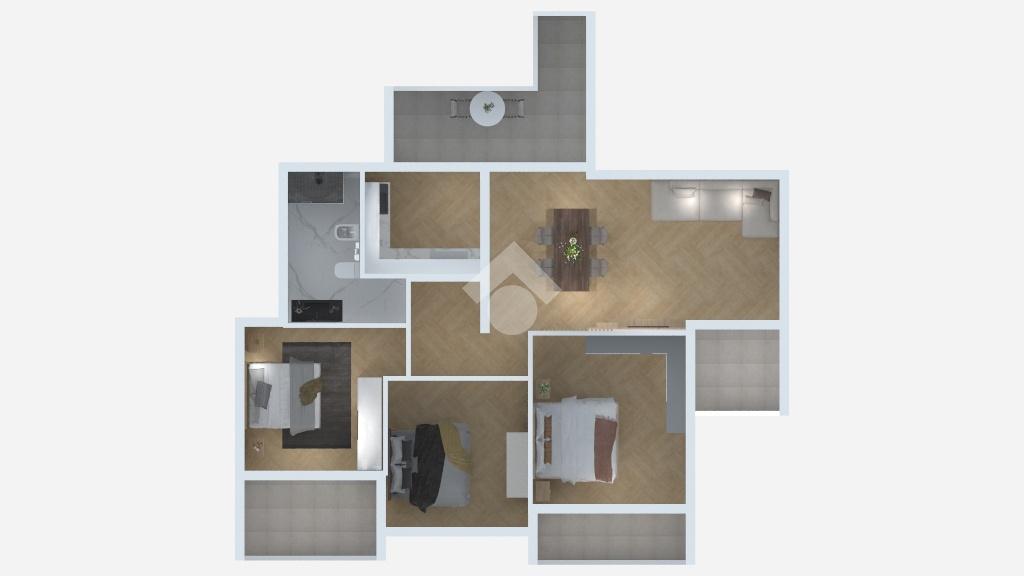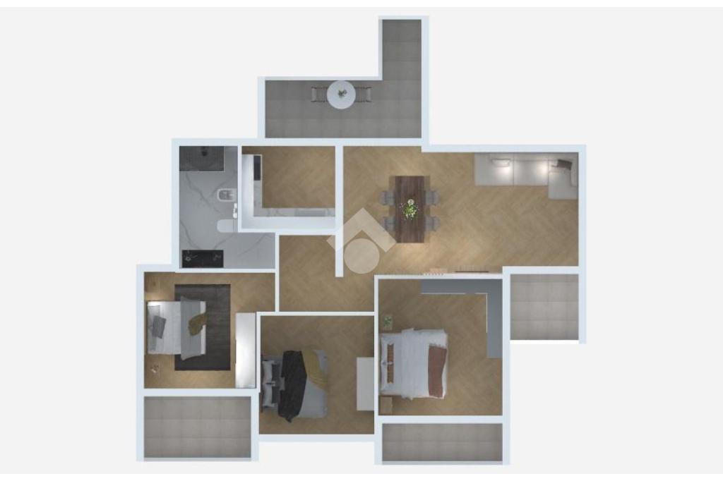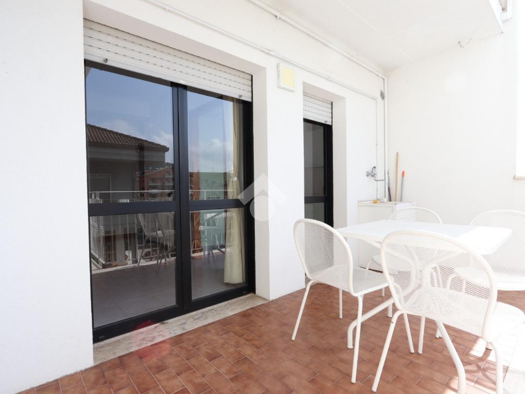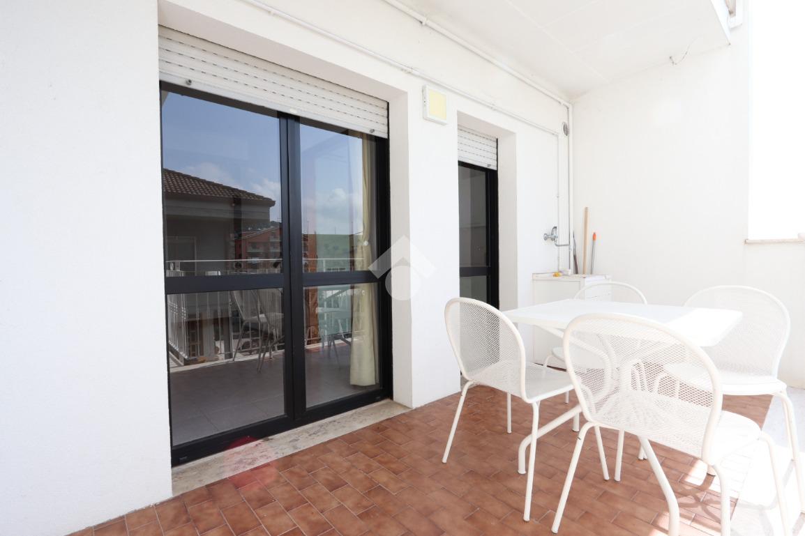 L'ingresso si apre su un soggiorno spazioso e luminoso, con accesso diretto al cucinotto separato, a un balcone e a un terrazzo abitabile attrezzato con lavabo, ideale per i momenti all'aperto. La zona notte, ben distribuita da un disimpegno, si compone di tre camere matrimoniali, due delle quali dotate di balcone privato, e di un bagno finestrato con box doccia.