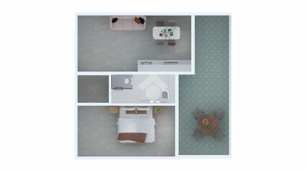 L'appartamento, situato al secondo piano, accoglie con un luminoso soggiorno che ospita una cucina a vista. Da qui, un ampio terrazzo abitabile, di circa 18mq, diventa il luogo ideale per rilassarsi o godersi una cena all'aperto. Un pratico disimpegno separa la zona giorno dalla zona notte, composta da una spaziosa camera matrimoniale e un bagno con box doccia e finestra.