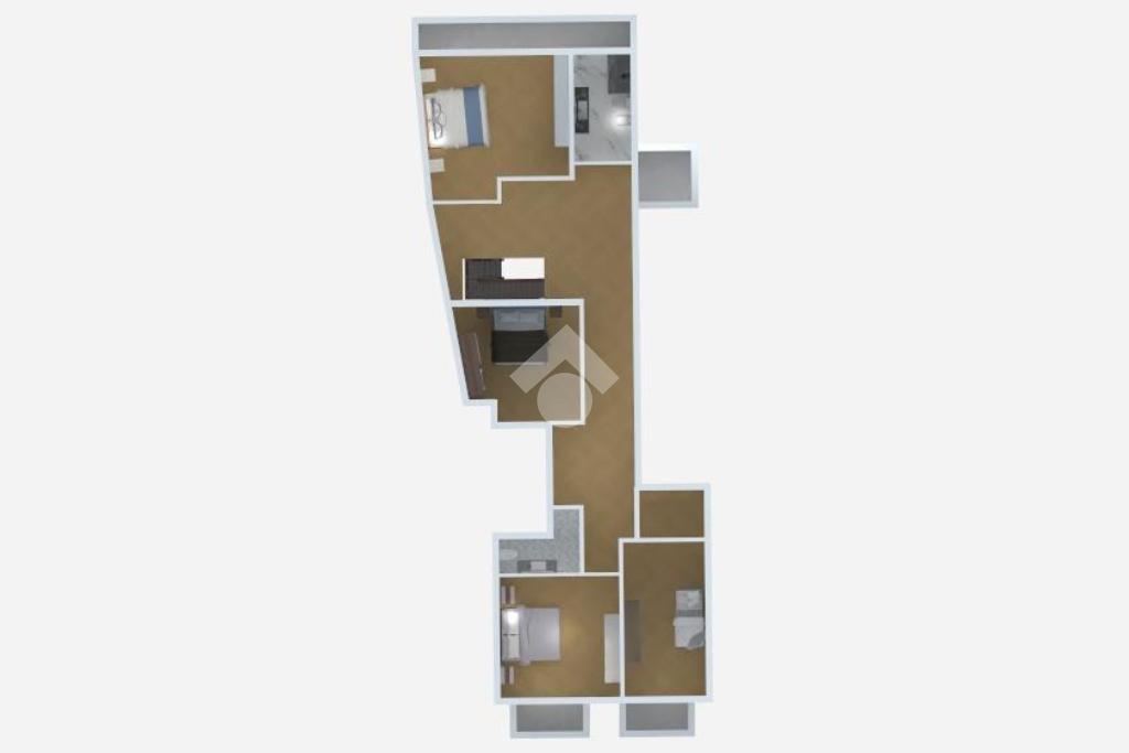 Una scala interna conduce al piano superiore, dedicato alla zona notte, dove troviamo quattro camere da letto: tre matrimoniali e una doppia con balcone, con vista sulla piazza, ideali per garantire comfort e privacy a tutti i membri della famiglia. Completano il piano due ulteriori bagni, pratici e funzionali.